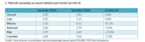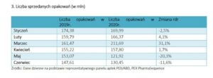 Liczba sprzedanych opakowań w czerwcu 2020 była o ponad 15 milionów niższa niż w czerwcu ubiegłego roku, co stanowi spadek o 11,6 proc. rdr.