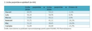 Po krótkim, dwutygodniowym szturmie na apteki w marcu, kwiecień i maj przyniosły gwałtowny spadek obrotów i liczby pacjentów. Trend ten nie odwrócił się także w czerwcu. Co ważne, spadkom obrotów towarzyszył gwałtowny wzrost kosztów prowadzenia aptek, spowodowany koniecznością przystosowania ich do pracy w warunkach pandemii.